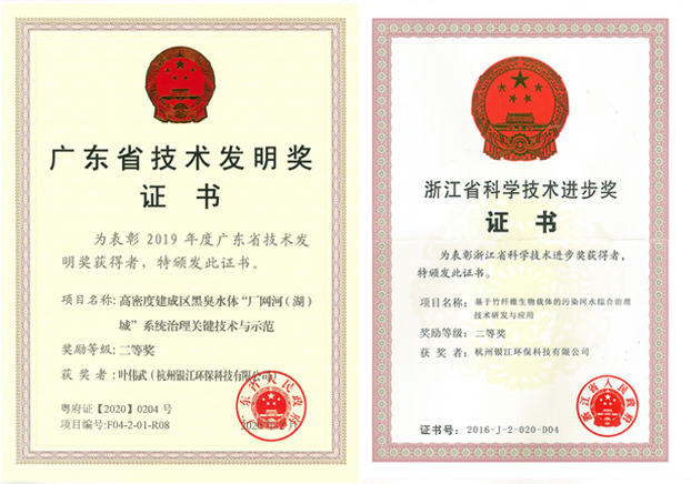 銀江環保河道綜合處理技術獲得浙江省科技進步二等獎