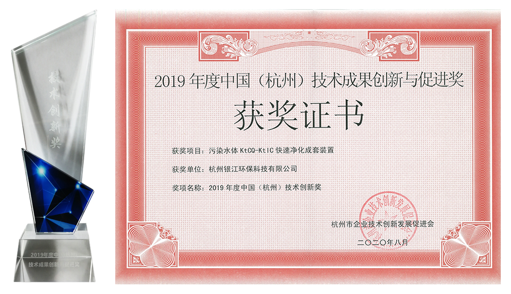 銀江環保污染水體KtCQ-KtIC快速凈化成套裝置榮獲“2019年度中國(杭州)技術成果創新與促進獎”!