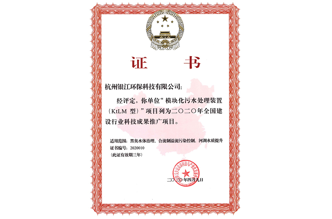 銀江環(huán)保“模塊化污水處理裝置(KtLM型)”列入全國建設(shè)行業(yè)科技成果推廣項目