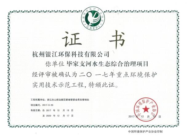 銀江環保對于畢家支河綜合治理的目標為:以水質提升為重點,通過相關措施,逐步恢復河道的水體生態,消除河道的黑臭和富營養化等現象,持續提升城區河道的水質。 具體目標為:2016年年底消滅黑臭,并達到Ⅳ類標準;后四年保持Ⅳ類標準。
