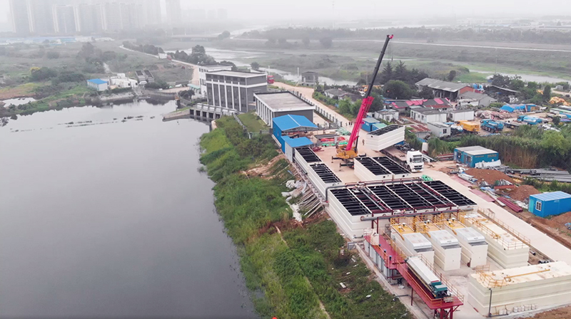 項目簡介:新興圩泵站位于南京市江寧區(qū)。泵站主要收集將軍大道以東、童橋路以南、蘇源大道以西、正方大道以北區(qū)域的雨水,匯水總面積3.35平方公里,前池蓄水量約3萬立方。新興圩泵站因年久失修已無法正常運行且缺少相應(yīng)的污水處理設(shè)備,積存雨污水外排對秦淮河水質(zhì)造成嚴(yán)重影響。我司響應(yīng)政府需求,為該污水泵站配套6000m3/d KtCQ水體快速凈化器,出水達到《城市黑臭水體整治工作指南》中消除黑臭標(biāo)準(zhǔn),同時提供運維服務(wù)。