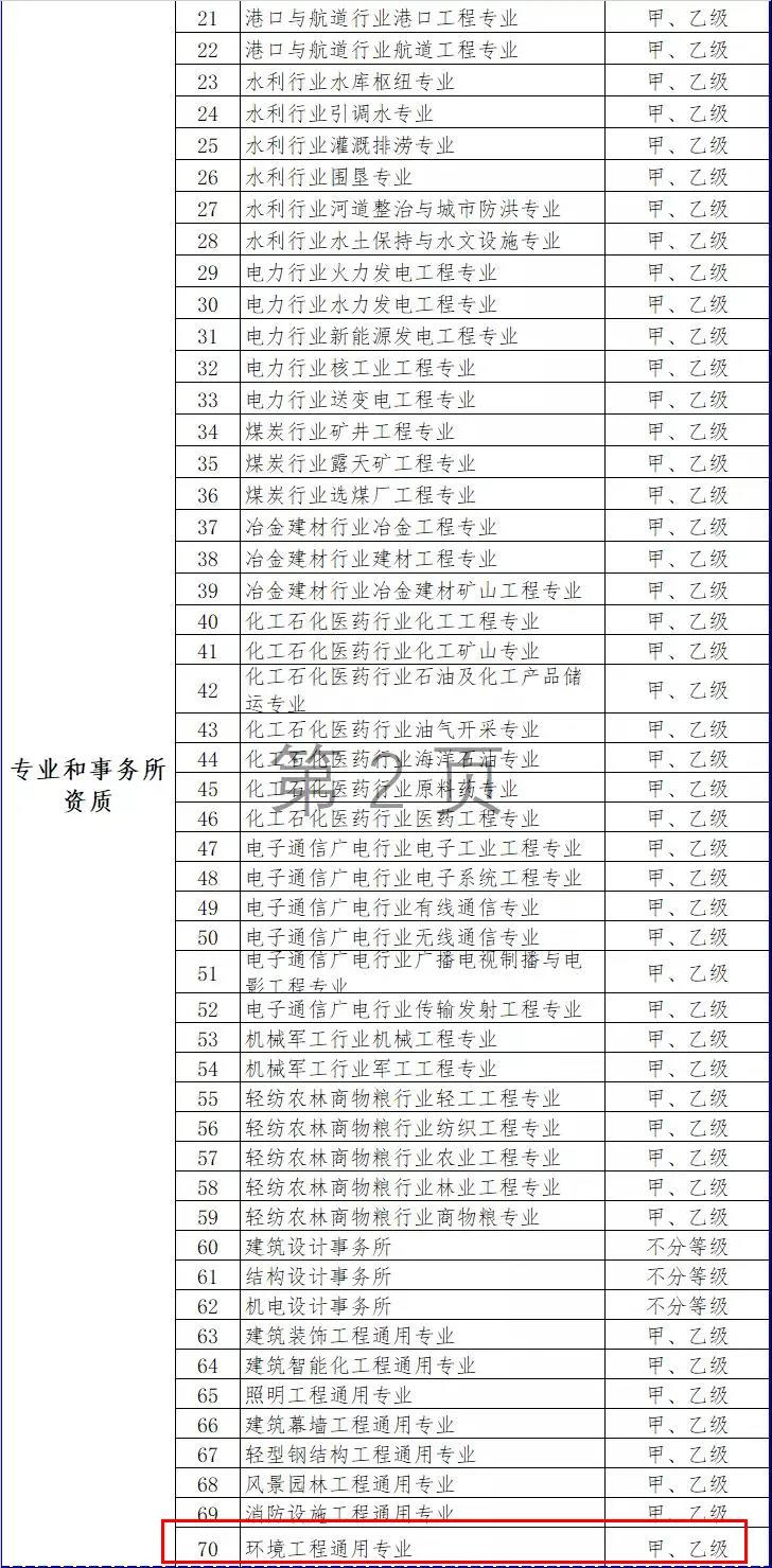 2.工程設計資質。保留綜合資質;將21類行業資質整合為14類行業資質;將151類專業資質、8類專項資質、3類事務所資質整合為70類專業和事務所資質。綜合資質、事務所資質不分等級;行業資質、專業資質等級原則上壓減為甲、乙兩級(部分資質只設甲級)。