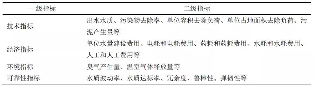 表1 污水再生處理技術與工藝評價指標體系
