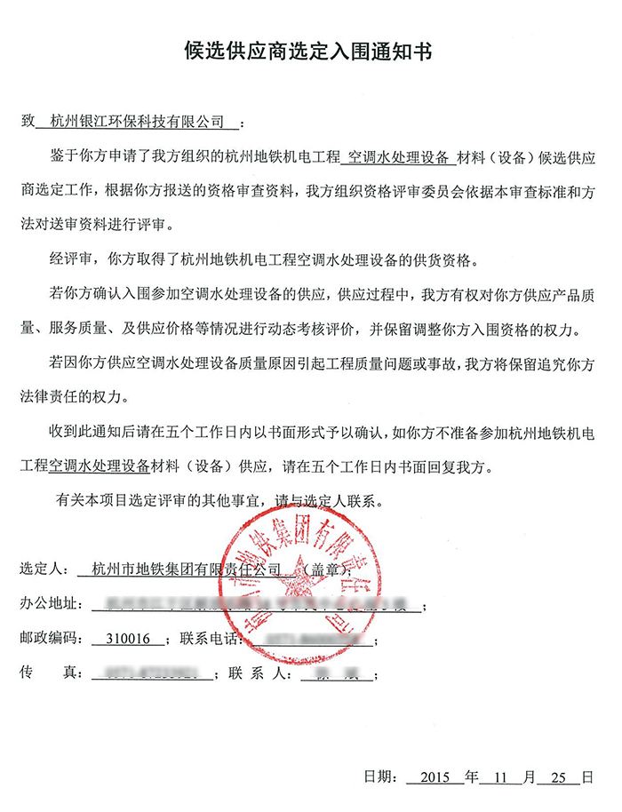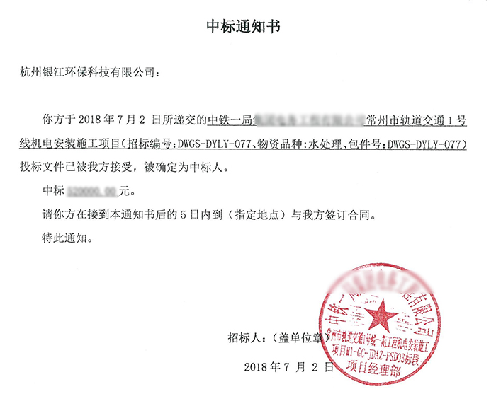 恭喜銀江環保于2015年底入圍杭州地鐵機電工程水處理設備候選供應商,今年7月又一次中標中鐵一局常州市軌道交通1號線機電安裝施工項目!循環水處理設備是銀江環保自2005年創業初就開始研制運用的老產品,經過十多年的不斷改進,產品質量精益求精,受到眾多好評!