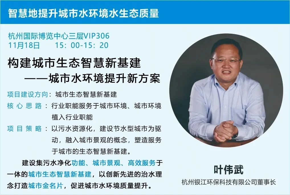 董事長葉偉武應邀將在智慧地提升城市水環境水生態質量專題研討會上發表《構建城市生態智慧新基建——城市水環境提升新方案》專題演講。