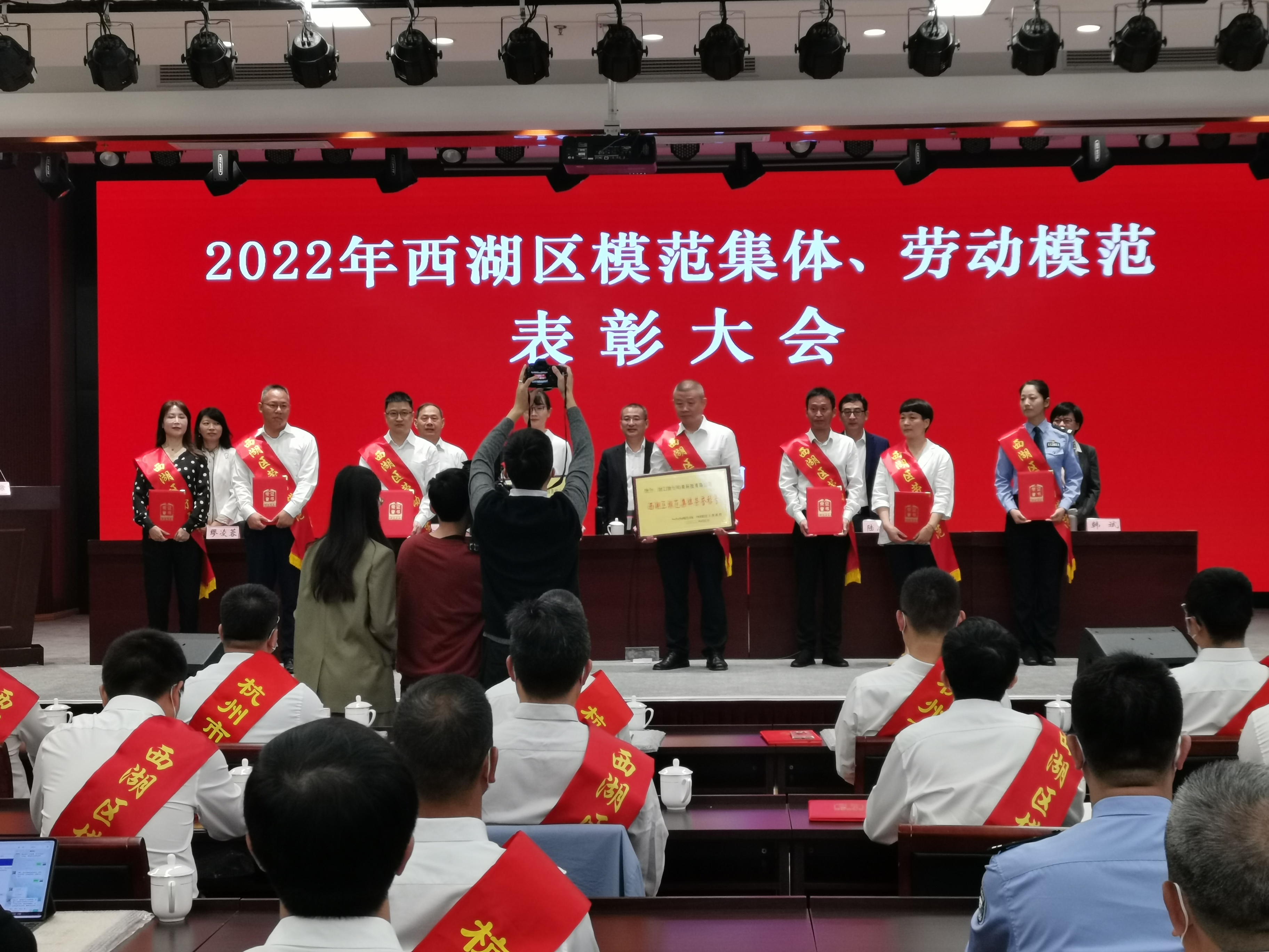 為了大力弘揚勞模精神、勞動精神和工匠精神,5月10日上午,2022年西湖區模范集體、勞動模范表彰大會在西資大樓會議室召開。區委書記高國飛出席表彰大會并講話,區委副書記、政法委書記陸志敏主持,區領導章岳定、韓斌、繆凌蓉,區勞模評選委員會成員單位主要負責人,各鎮街、平臺主要負責人出席本次表彰大會。