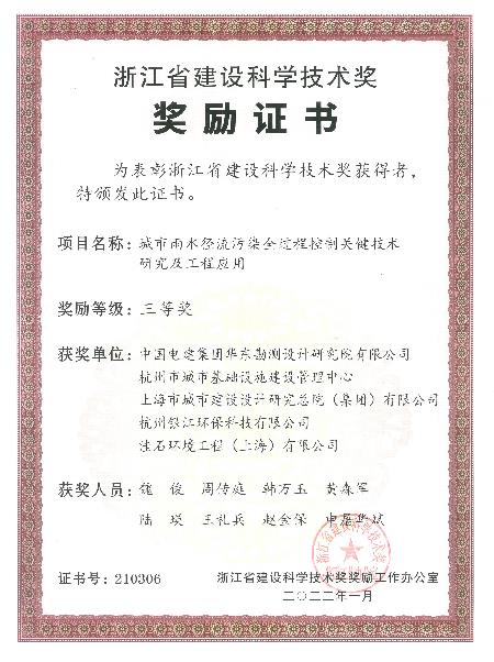 銀江環(huán)保《城市雨水徑流污染全過(guò)程控制關(guān)鍵技術(shù)研究及工程應(yīng)用》獲中國(guó)電建科學(xué)技術(shù)二等獎(jiǎng)。