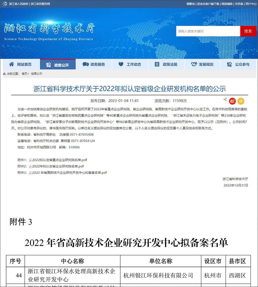 銀江環(huán)保獲得省級(jí)高新企業(yè)研發(fā)中心認(rèn)定以及2項(xiàng)科技獎(jiǎng),為2023年高質(zhì)量發(fā)展夯實(shí)基礎(chǔ)發(fā)布日期:2023-01-06