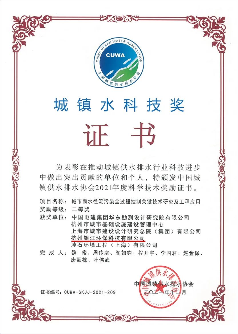 城鎮(zhèn)水科技獎(jiǎng)二等獎(jiǎng)