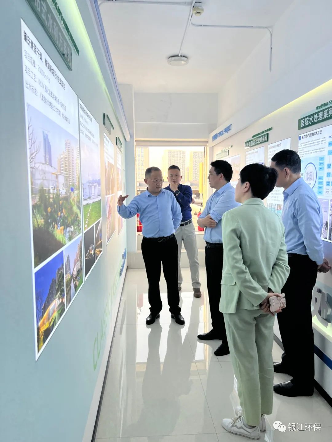 董事長葉偉武對(duì)劉存磊市長一行的到來表示熱烈歡迎,并陪同參觀了銀江環(huán)保企業(yè)文化走廊,為大家介紹了銀江環(huán)保-城市綠色低碳排水系統(tǒng)和公司的樣板案例,市長一行對(duì)銀江環(huán)保的治水理念、核心產(chǎn)品有了一個(gè)深入的了解,對(duì)公司的發(fā)展成績給予了肯定。